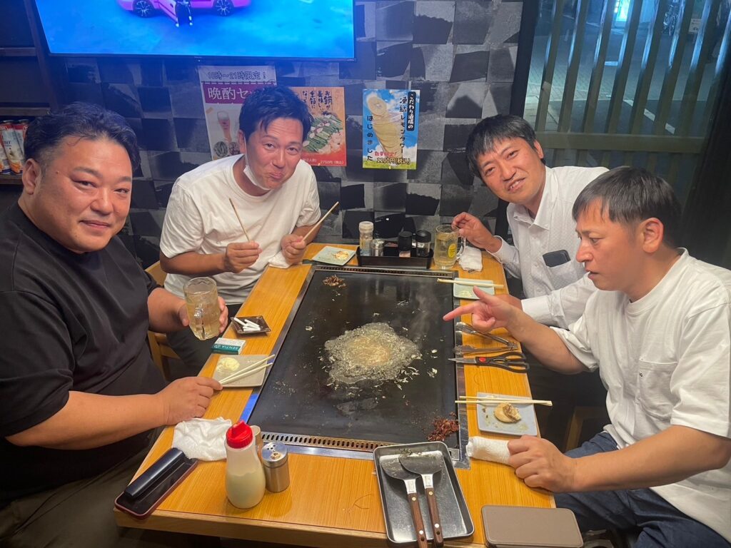 会議の後は、会員の原田君のお店「酒ともんじゃ焼き SAKURAYA」にて懇親会を行いました。 今日は、急遽オブザーバーが参加しました。我々の活動をみてYEGに興味を持って頂いたみたなので、ぜひ仲間になってもらいたいです。