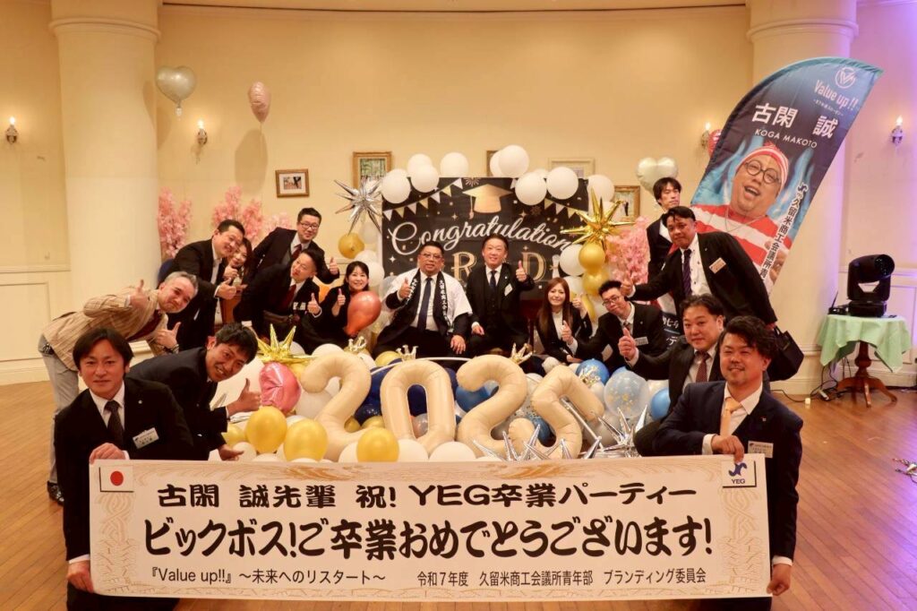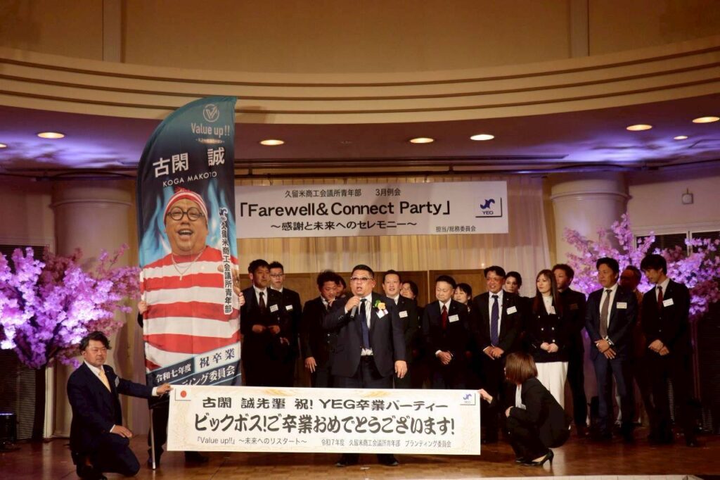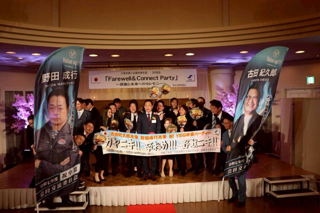 本例会では、これまで本会を支え、牽引してこられた卒業生の皆様を送り出すフェアウェルパーティーを実施いたしました。会場では、卒業生と会員同士の強い絆や笑顔、これまでの活動の中で生まれた数々の経験や交流を振り返りながら、YEG活動を通じて見つけた新たな魅力や自己成長の歩みを共有する時間となりました。